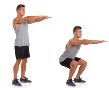 Squat jumps - Squats to toes (rise on to your toes rather than completing full jump) - Squat